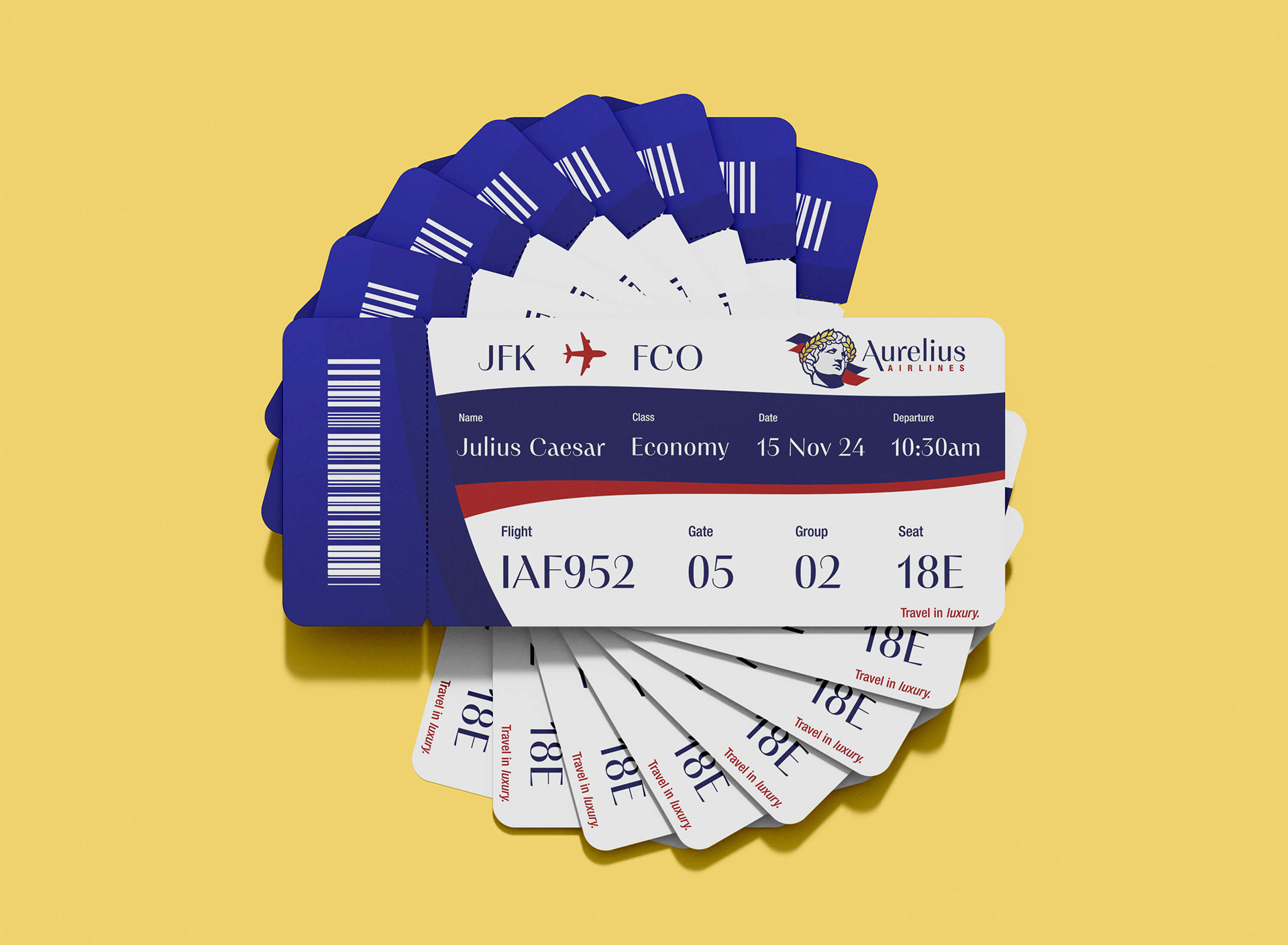 The goal of this project was to create a new airline and provide it with a comprehensive branding treatment. I chose to create a Rome-centered airline, drawing inspiration from Marcus Aurelius, the Roman Emperor and Stoic philosopher. The brand focuses on timeless luxury and comfort.
